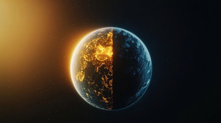 Illuminating Planet Earth at Sunrise A Celestial Sphere of Light and Darkness Showcasing the Intricate Interplay of our World s Atmospheric Geological and Geographical Features