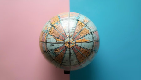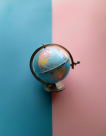 Ancient globe, isolated on a Soft blue and Pink Pastel