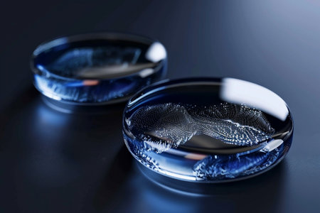 Two circular glass petri dishes with intricate, data-like patterns inside
