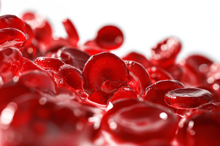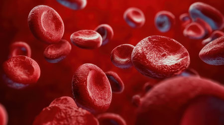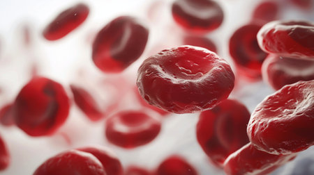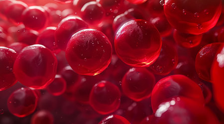 Close-up image of red blood cells showcasing their unique structure and vibrant color. Perfect for educational and medical projects, illustrating human biology.