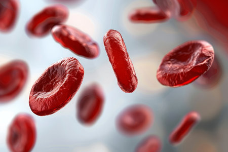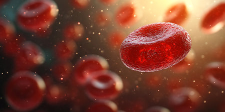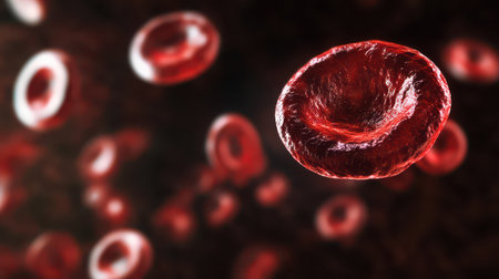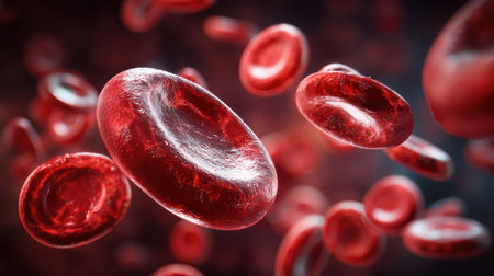 Red blood cells float in a dark background showcasing their unique disc shape and role in oxygen transport throughout the body.