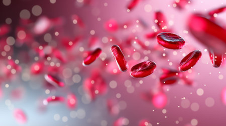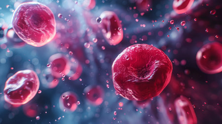 Stunning and depicting detailedion of red blood cells gracefully flowing through the bloodstream, showing their intricate structure and dynamic motion