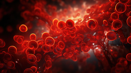 Stunning and depicting detailedion of red blood cells gracefully flowing through the bloodstream, showing their intricate structure and dynamic motion