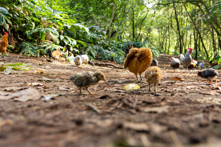 Chickens roaming around their known land