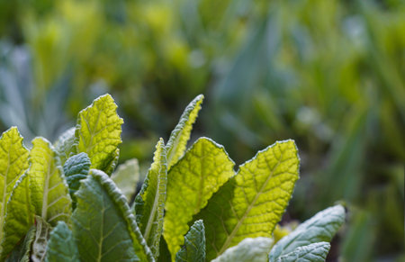 Mullein plant rosette in the spring. Verbascum fluffy leaves.