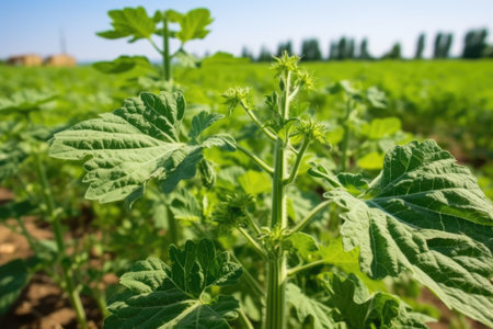 close-up of watermelon plant blooming in an organic field, created with generative ai
