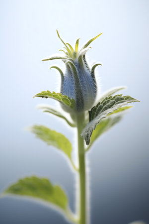 Generative AI Unusual flower hostsa close-up macro photography. Blue-green inflorescence of hosta photo with copy space. Unusual blue flower for wallpaper or screensaver.