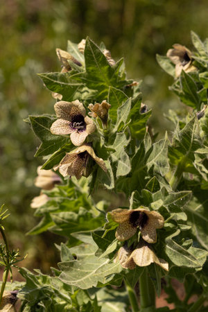 Blossoming hyoscyamus, henbane or stinking nightshade is a dangerous plant