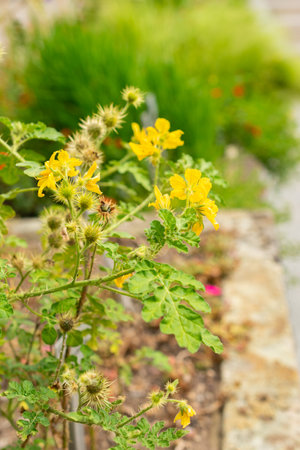 Saint Gallen, Switzerland, July 14, 2024 Solanum Rostratum or buffalobur nightshade plant at the botanical garden