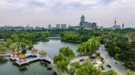 Aerial scenery of Zhongshan Park in Wuhan, Hubei in late autumn and early winter
