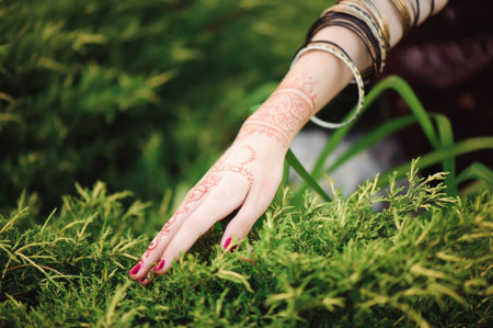 One young woman holding elegant henna bracelet, celebrating Indian culture generated by artificial intelligence