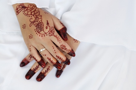 Very beautiful and unique henna paintings are on both hands of the bride.
