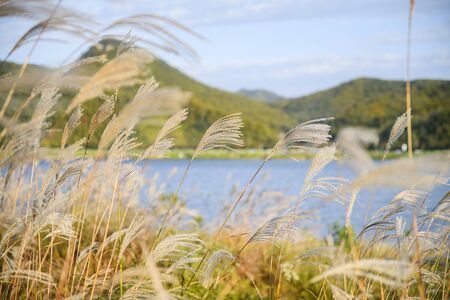Colorful autumn landscape in the park and the countryside. Beautiful flowers and trees in the autumn season. 220