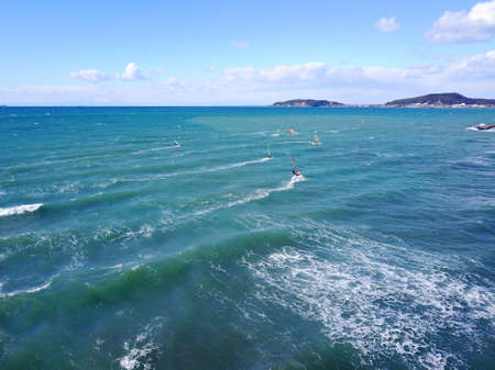 Blue sky and waves spread over Iwaya coast in winter (Fukuoka Prefecture)