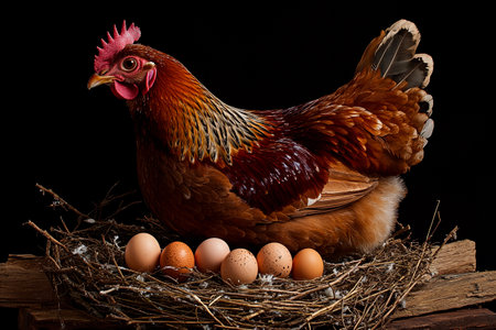 mother hen protecting her newly laid eggs, created with generative ai