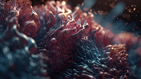 Abstract biology. Microscopy of colorful organic structures, microorganisms, cells. Microbiology concept. Generative AI.