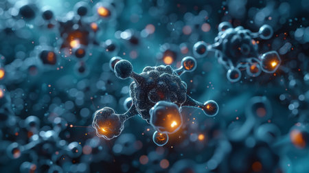 Molecular structure of cancer cell magnified for research in microbiology generated by artificial intelligence