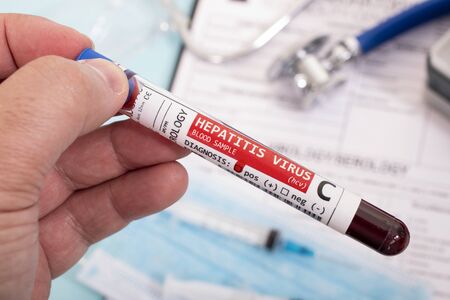 Hepatitis C Test test to look for abnormalities from blood, blood sample to analyze in the laboratory, blood in test tube