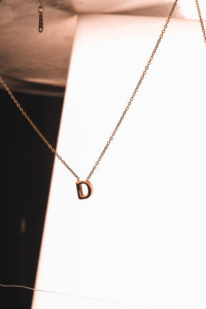 Necklace chain on white background, selective focus, macro