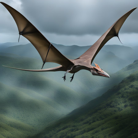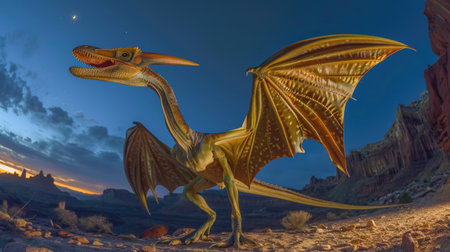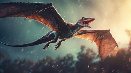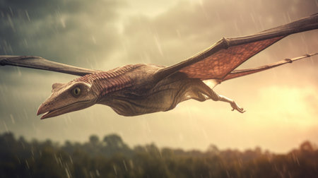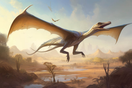 Pterosaur dinosaur flies in the sky