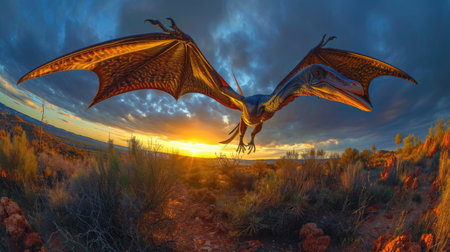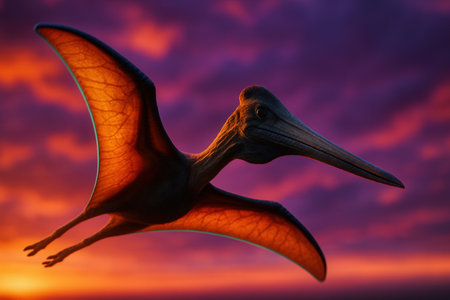 Quetzalcoatlus Flying Across Vibrant Sunset Sky