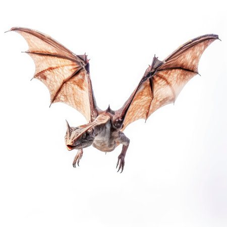 Bat flying isolated on white background with clipping path and full body.