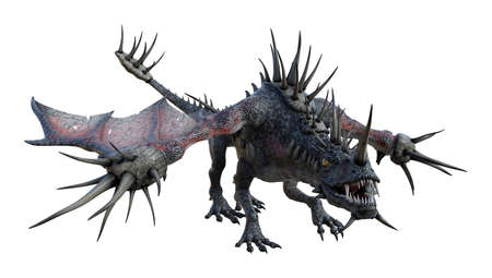 3D rendering of a spiky fantasy dragon isolated on white background