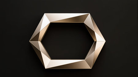 Against showing ornate hexagonal golden frame with intricate detailing against a dark blue background keywords:...