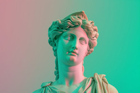 Statue of Apollo, ancient Greek goddess of wisdom, on gradient background