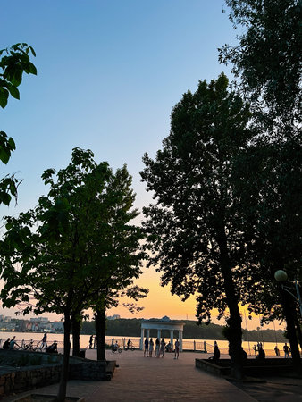A beautiful sunset in King Mihai I Park Bucharest Romania