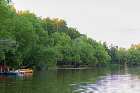 May 22, 2018, Moscow, Russia. Vacationers ride catamarans on the Big Golitsyn pond in Gorky Park in Moscow.