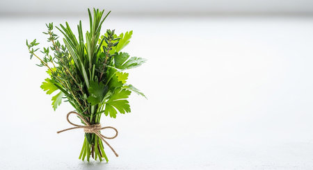 AI Generated. Fresh Herbs Tied in Rustic Bundle for Culinary Inspiration