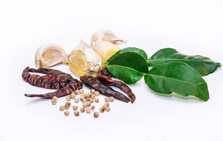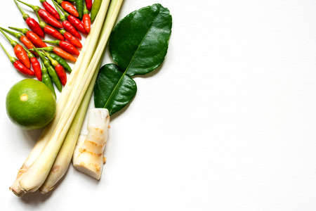 Thai food ingredient for Tom yum isolated on white background with copy space