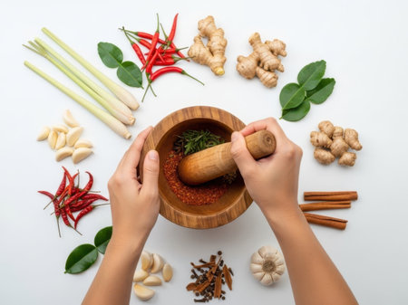 Herbs and spices set to make Tom Yum spicy soup on the chopping block