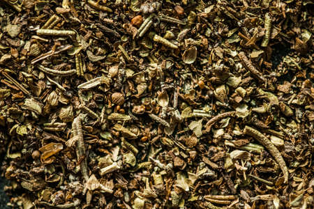 Provencal spices mix closeup on luxury stone background as flat lay, dry food spices and recipe ingredients