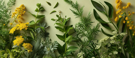 Modern flat lay style showcasing herbal medicine and cosmetic background