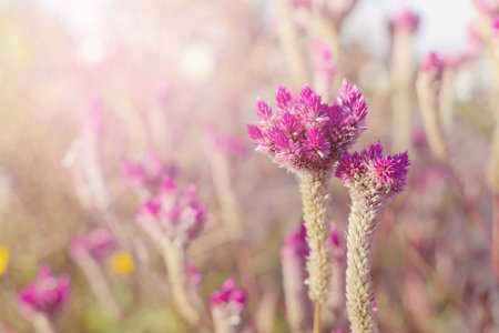 Close-up Gomphrena Globosa flowers in the field in morning selictive focus