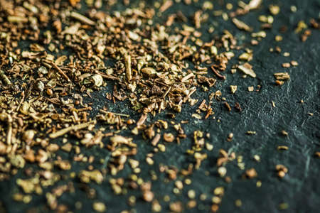 Provencal spices mix closeup on luxury stone background as flat lay, dry food spices and recipe ingredients