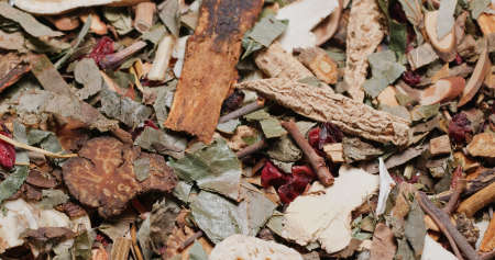 Large assortment of dried medicinal herbs, roots and bark