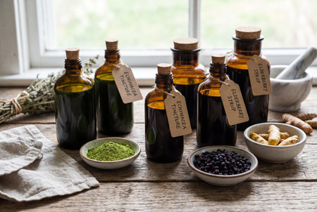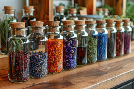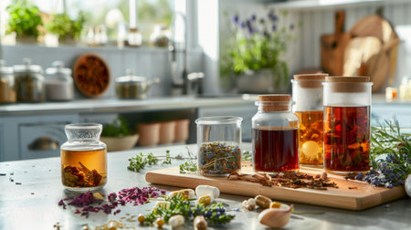 herbal teas and homeopathic remedies displayed on a kitchen counter represent alternative medicine and holistic wellness