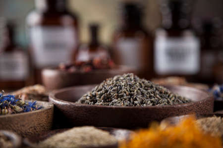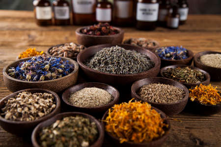 Natural remedy,Herbal medicine and wooden table background