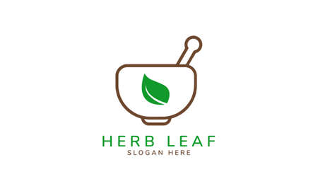 Herb Leaf . Herb Bowl With Green Leaf vector Design. Usable For Pharmacy And Medical