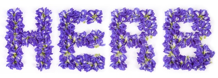 Word herb create by butterfly pea on white background