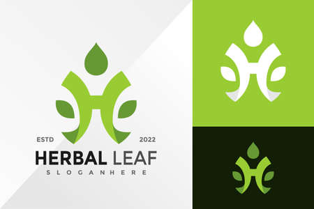 Letter H Herbal Leaf Logo Design Vector illustration template