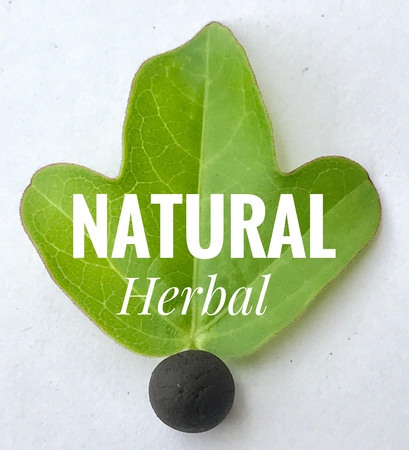 inscription herbal on a bright green fresh leaf of greenery made of small wooden letters