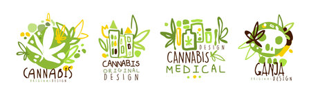 Cannabis Plant Original Label and Logo Design Vector Set