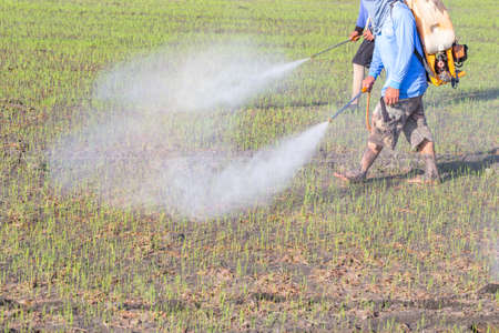 Weed killer herbicide glyphosate spraying. Non-organic vegetables.