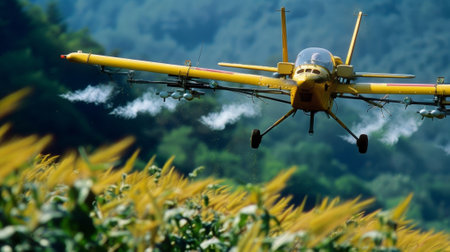 Agricultural land crop spraying on a sunny day in rural area with vibrant sunshine
