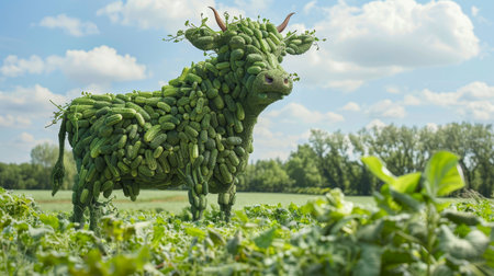 Vegetables in the shape of a bull in the field.