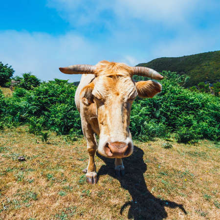 cow close-up on the farm, summer